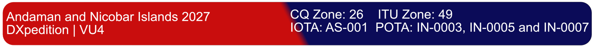 From October 25 – November 7, 2027, a team of 14 operators will be active from Andaman Island, operating five stations 24/7 on bands from 10m to 160m including the WARC bands using all modes. The priorities for this DXpedition will be to provide maximum exposure for sponsors, provide the highest number of QSOs possible to North America, and placing First in the 2027 CQ World Wide SSB DX Contest for Asia.